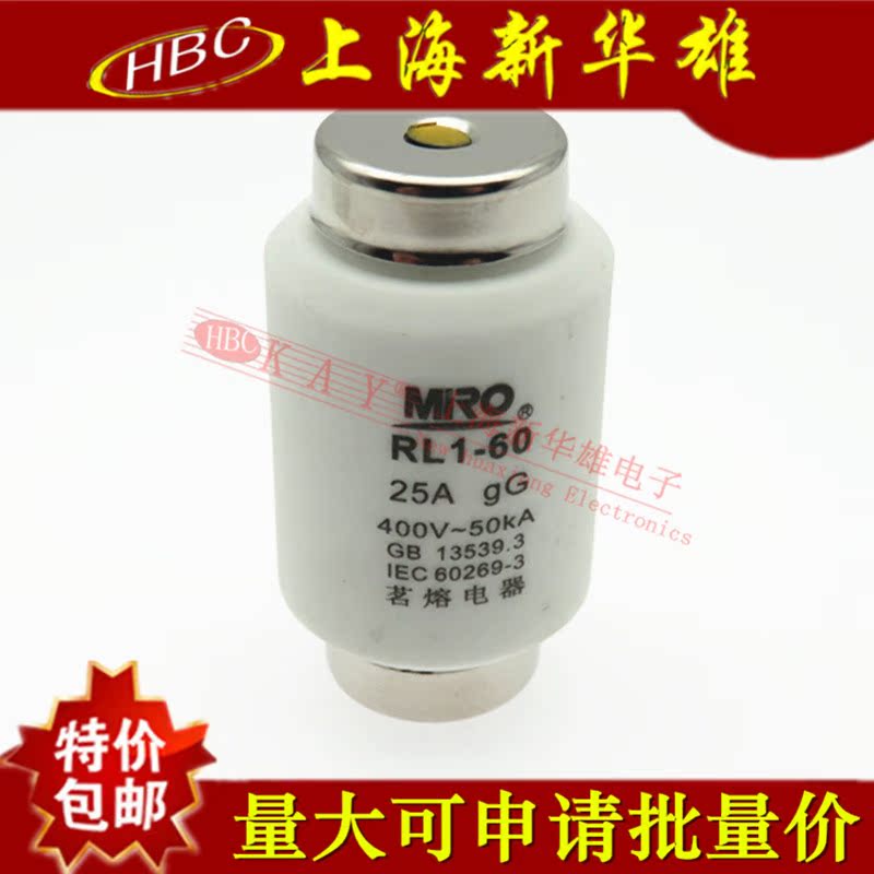 MRO tea melting fuse tube RL1-60 35A 40A 50A 60A 400V spiral fuse melting core
