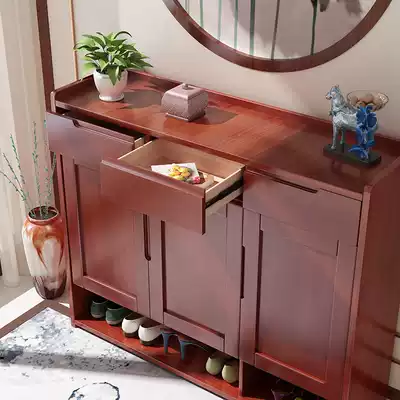 Breathable shoe cabinet Solid wood new Chinese shoe cabinet household door simple modern large-capacity locker entrance cabinet