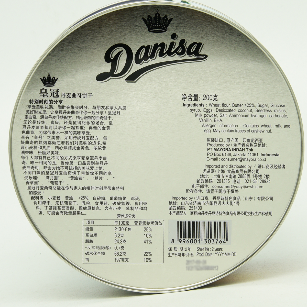 (200g)Danisa Crown cookies 200g Indonesia imported Danish style cream cookies iron box