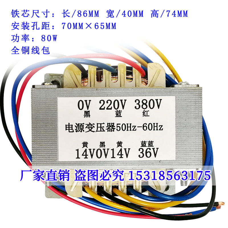 Inverter welding machine working frequency control transformer 220V 380V turn double 14V 36V 80W 86 86 40 all-copper-Taobao