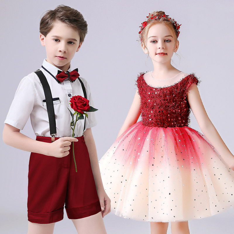 Children's Chorus Costume Primary and Secondary School Students Performance Costume Six One Chorus Recitation Performance Costume Girls Puff Skirt Set