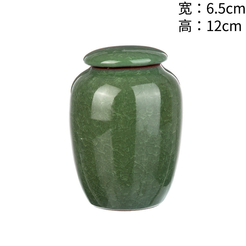 Ice cracked tea pot ceramic malachite green tea pot universal storage storage tank antique sealed Pu'er tea pot