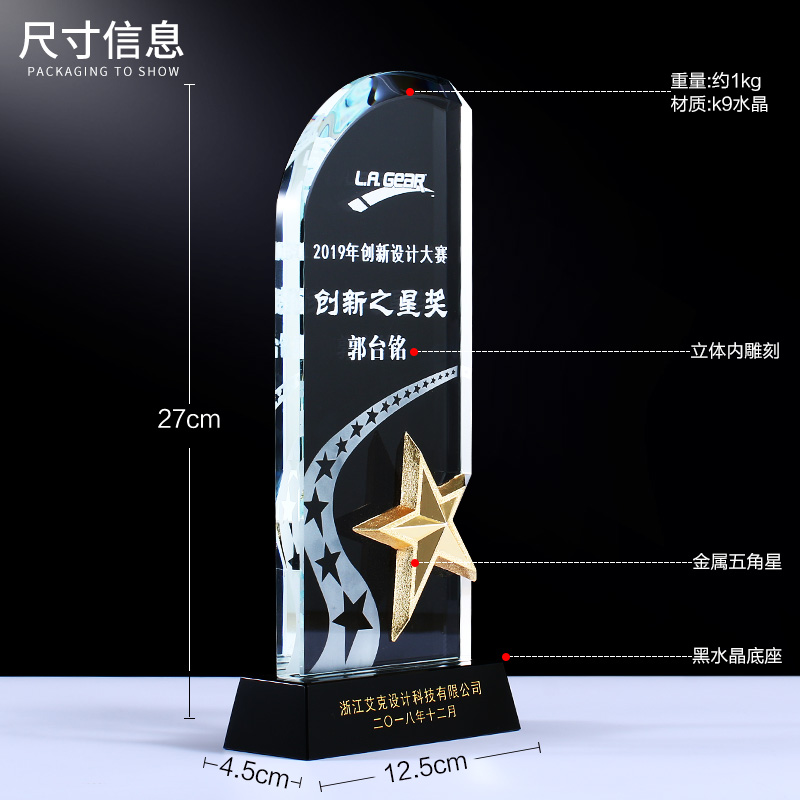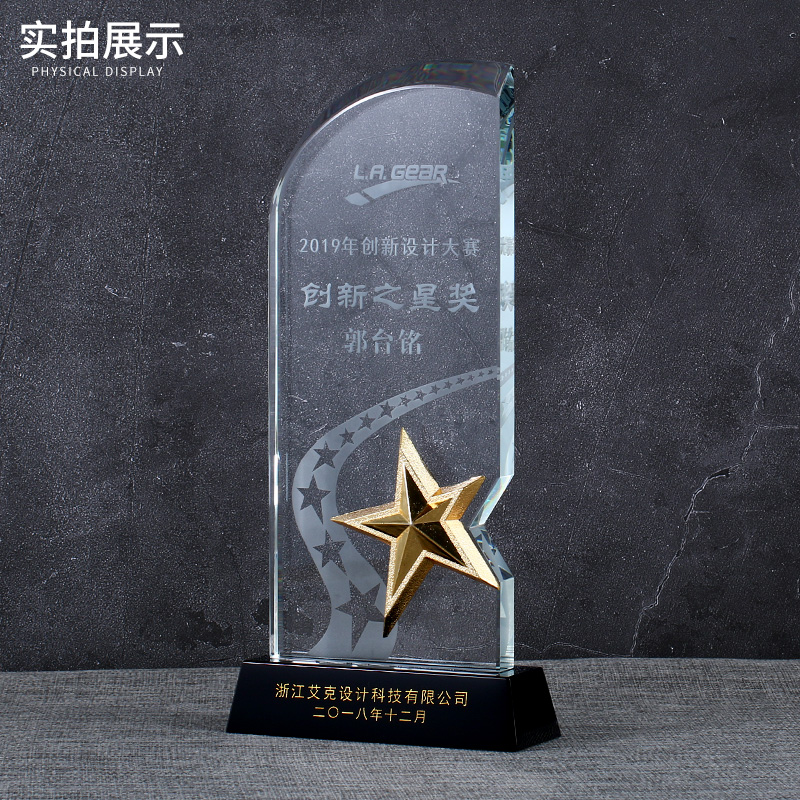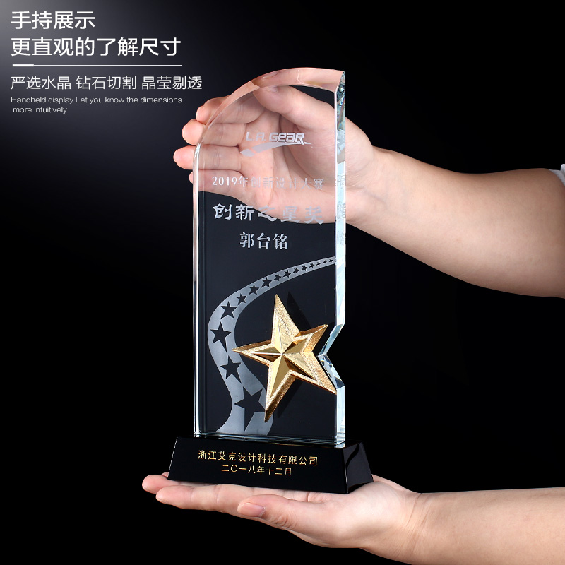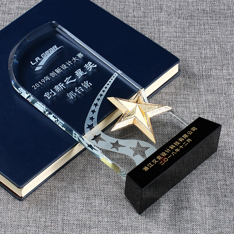 Crystal Glass Trophies Custom Pentagram Trophy Set Up Sales Company Excellent Employee Honor Medal Making