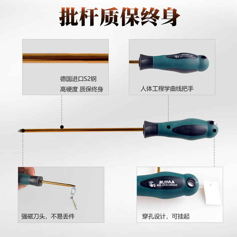 Anti-oil corrosion resistant cross-lined screwdriver set group Germany imports S2 steel ultra-hard Mayflower driver Industrial grade