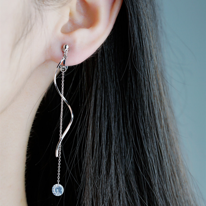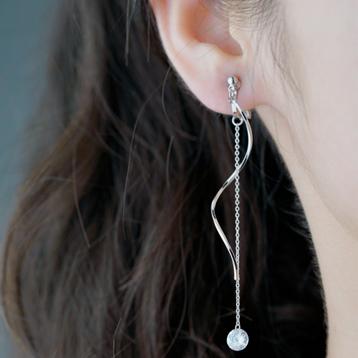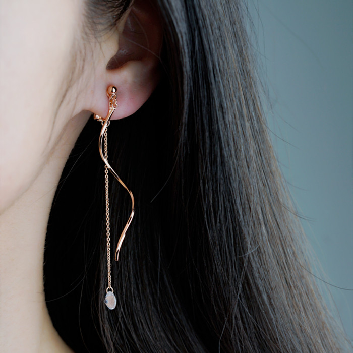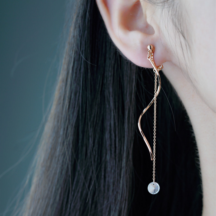Minimalist wind material plated real gold wave flow Su no ear clip super fairy fashion crystal pendant Long version Temperament Commute