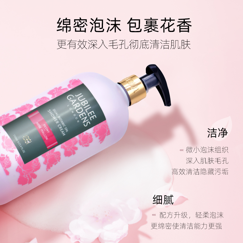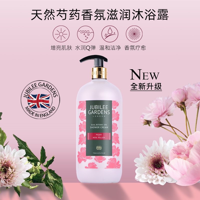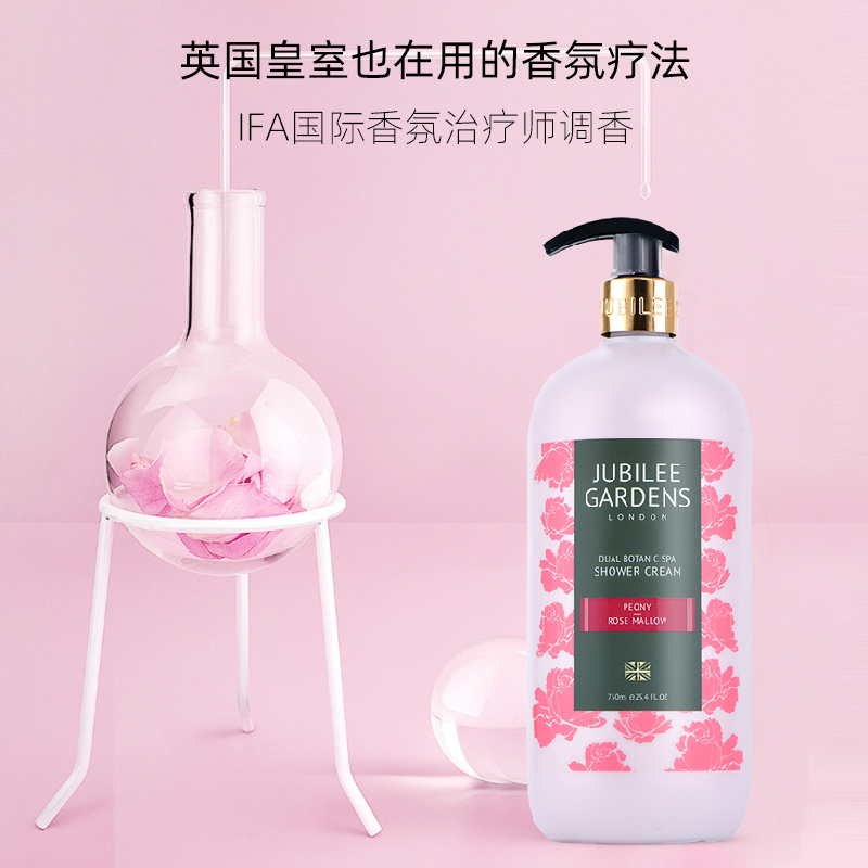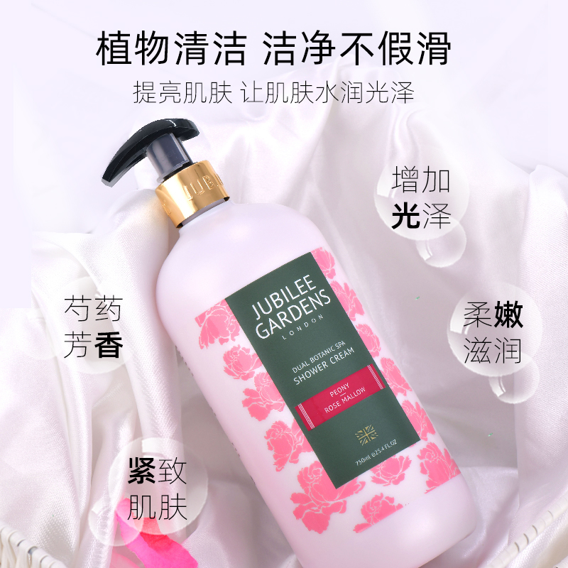 Imported Jubilee Gardens British Peony Shower Gel with long-lasting fragrance to brighten dull skin tone