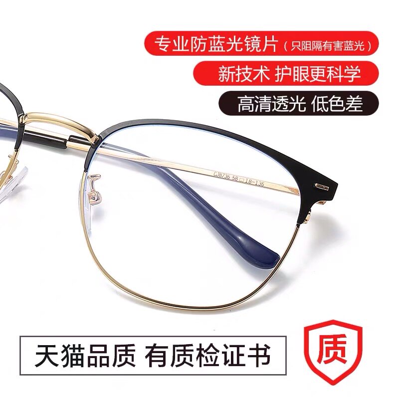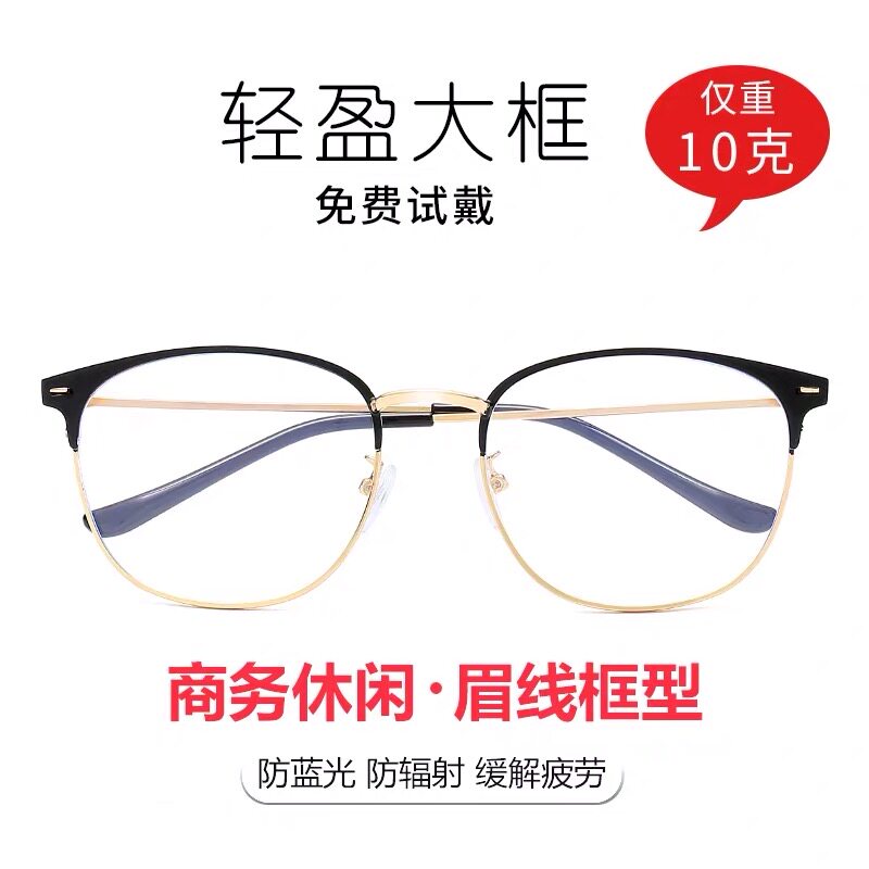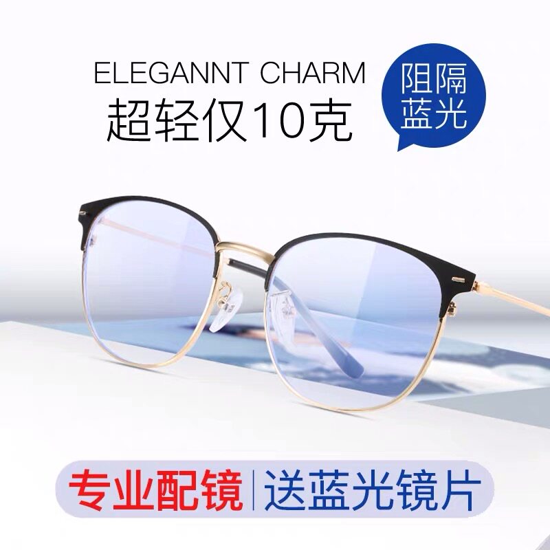 Anti-blue light radiation computer eyewear male wave female eye myopia semi-frame watching mobile phone special no degree flat light