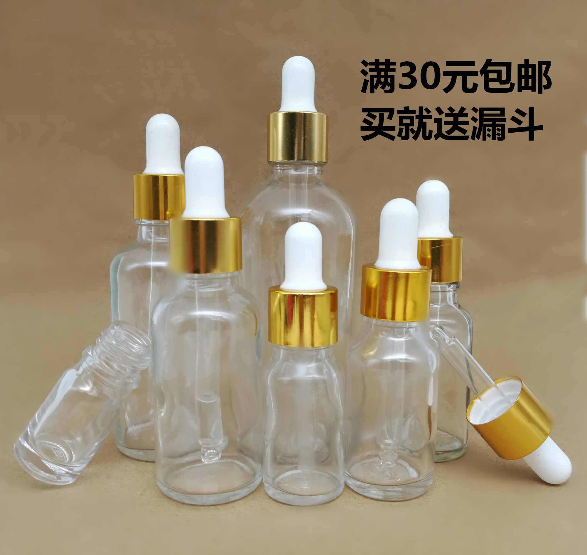 Transparent glass essential oil blending bottle rubber head dropper dispensing dilution bottle 5-100ml empty bottle cosmetics bottling