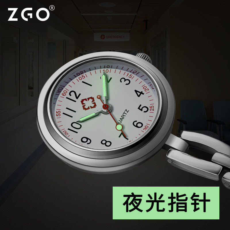 zgo Zhenggang men and women nurse watch Luminous Medical chest table Korean version of women's small pocket watch chest table retro student Wall watch