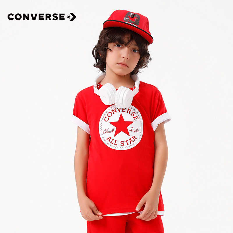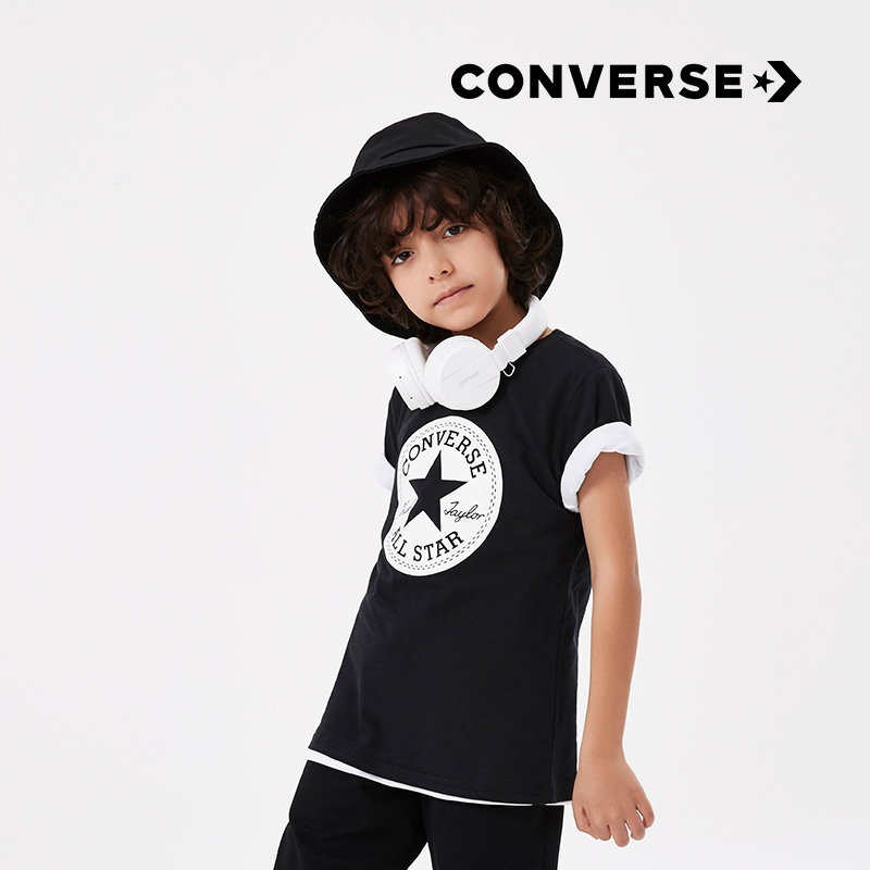Converse Converse children's clothing summer boys and girls foreign style bottoming shirts big children's cotton children's short-sleeved T-shirt