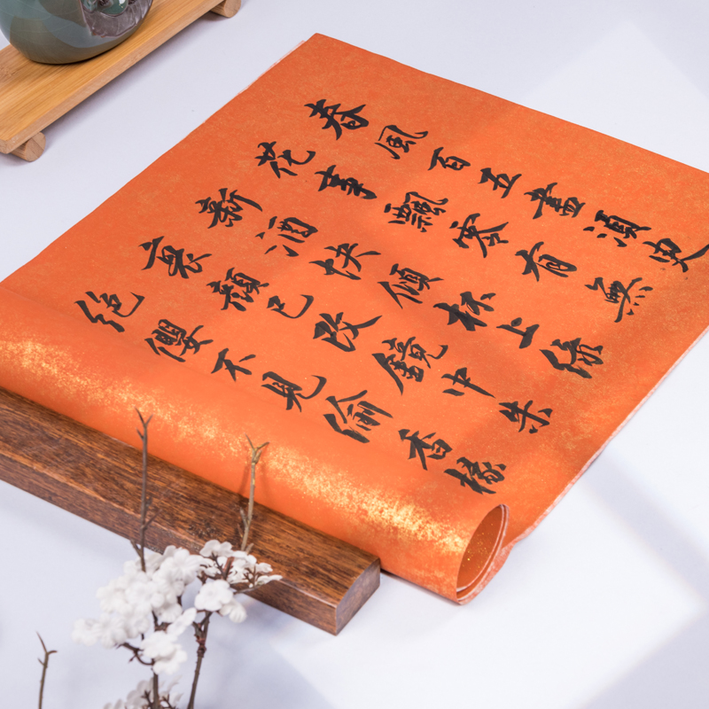 Batik Batik Liu Gold Letterhead Four Feet Six Feet Open Three Open Half Raw Half Cooked Half Cooked Imitation Ancient Years Red Xuan Paper Small Block Letters of Books Law Works Creation of the participating countries Special Anhui Blank Xuan Paper Wholesale
