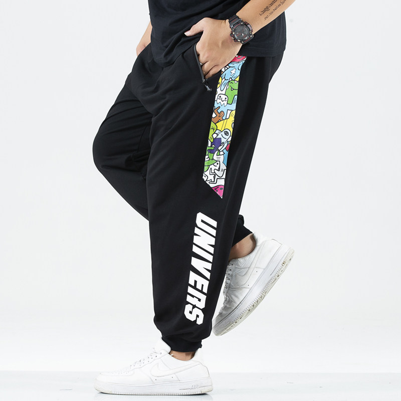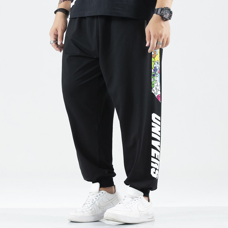 Large size Male pants Pants Damp elastic Sports pants Long pants Fat and Fat Increased Loose Casual Five Color Printed Bunch of bunches