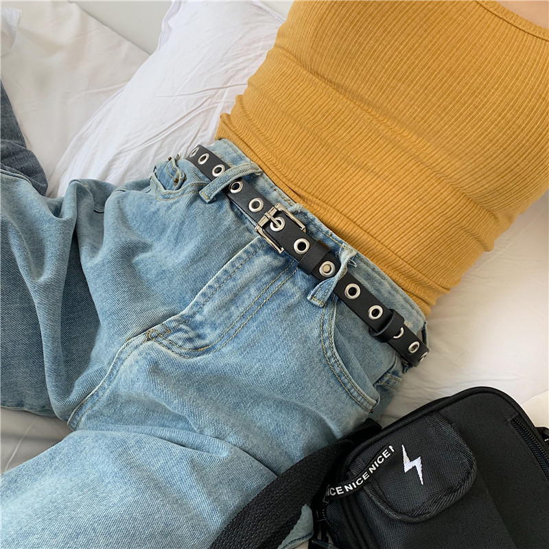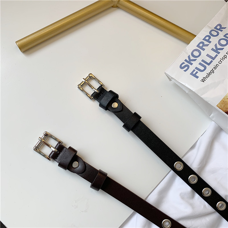 Hong Kong style metal hollow belt female punk style decorative jeans belt handsome student punch-free belt thin BF style