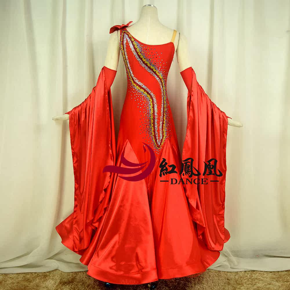 Red Phoenix New Elastic Satin Morden Dance Professional Race Dress Great Hem Skirt National Mark Social Dance Performance BR868