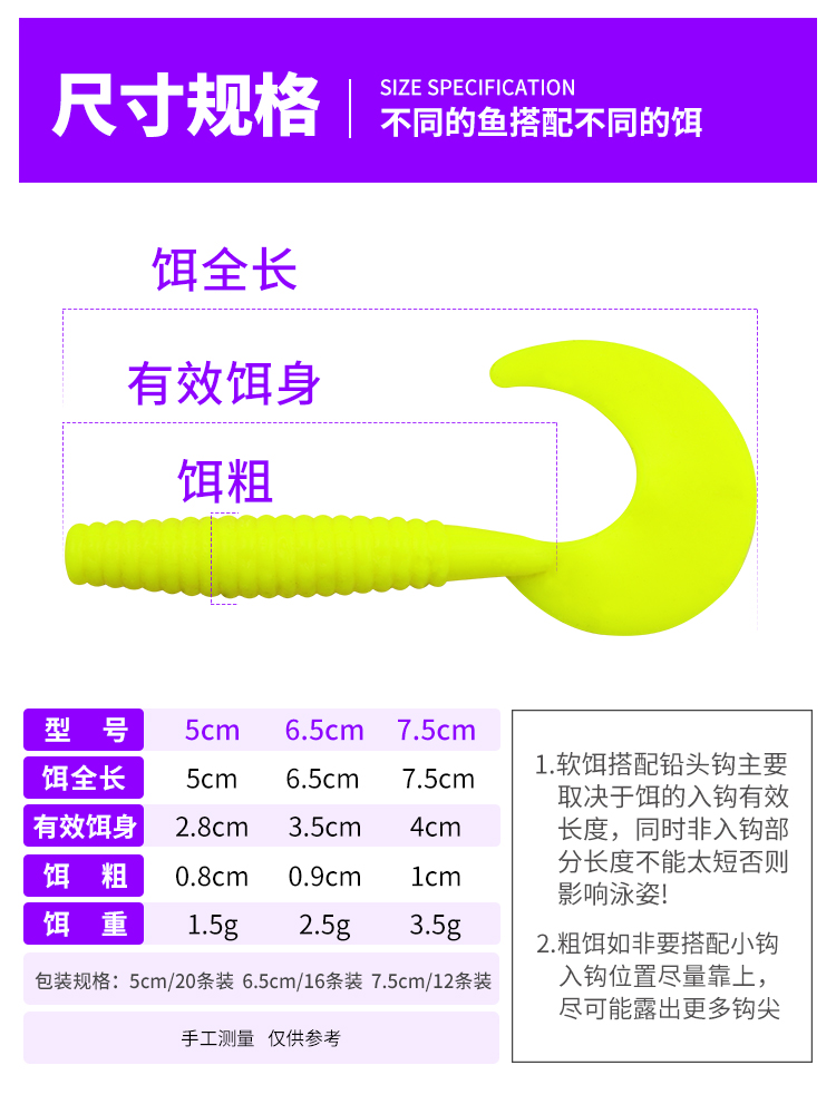 Luya bait Capuchin soft bait Capuchin maggot lead head hook bait combination Soft worm Luya bait set Mandarin fish perch mouth