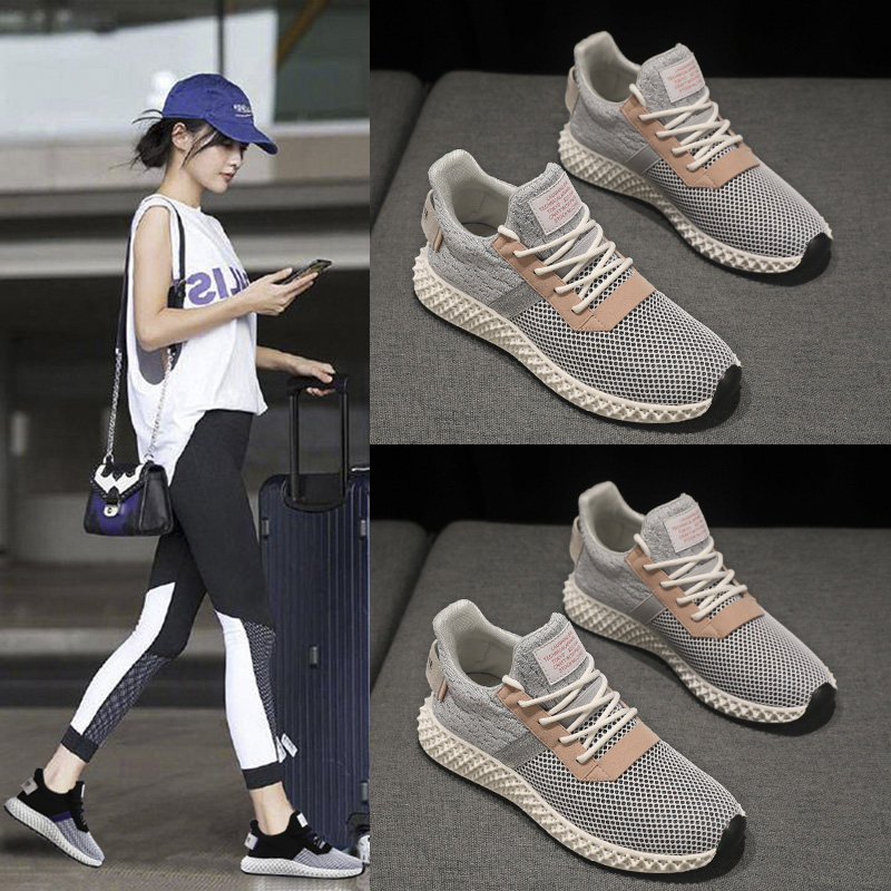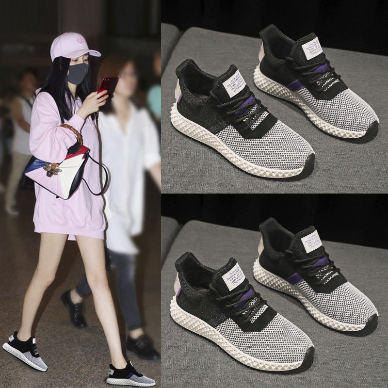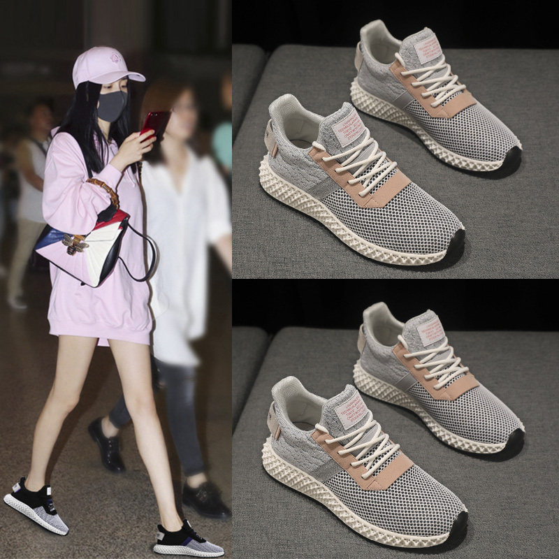 Star Same-style Sneaker Women's New Korean Version Casual Net Face 100 Hitch Running Shoes Breathable Lightweight Flying Knit Little White Shoes