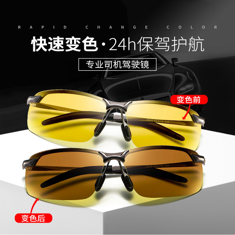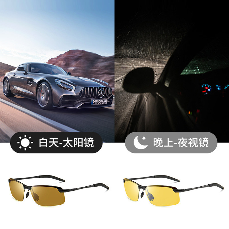 Day and night Dual-purpose polarized night-vision goggles driving special discoloration sunglasses male tea colour sunglasses female driving special glasses driving mirror