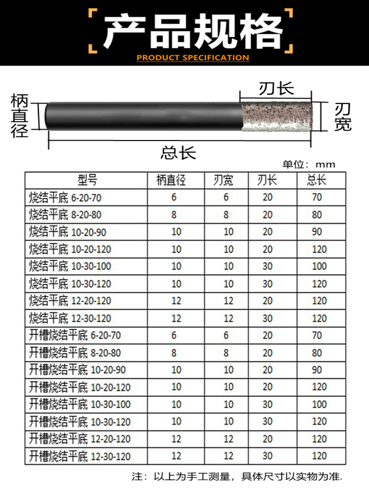 Stone carving knife granite sintering knife CNC stone carving machine tool hard stone carving knife flat bottom straight knife