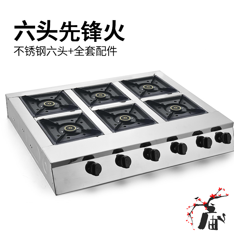 Multi-hole hearth cooking porridge with six eyes and two ends integrated pendulum spread gas stove gas Three-head Han style Saucepan Oven Commercial Foci