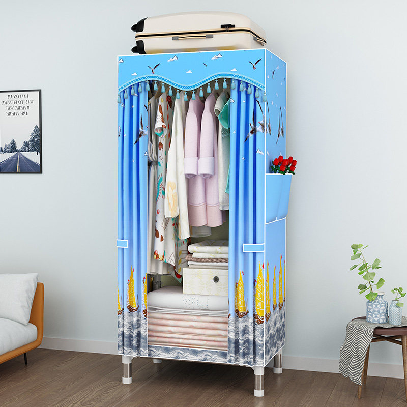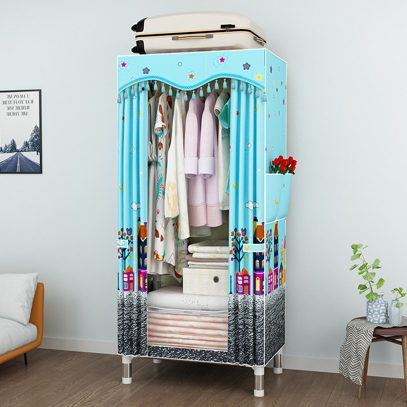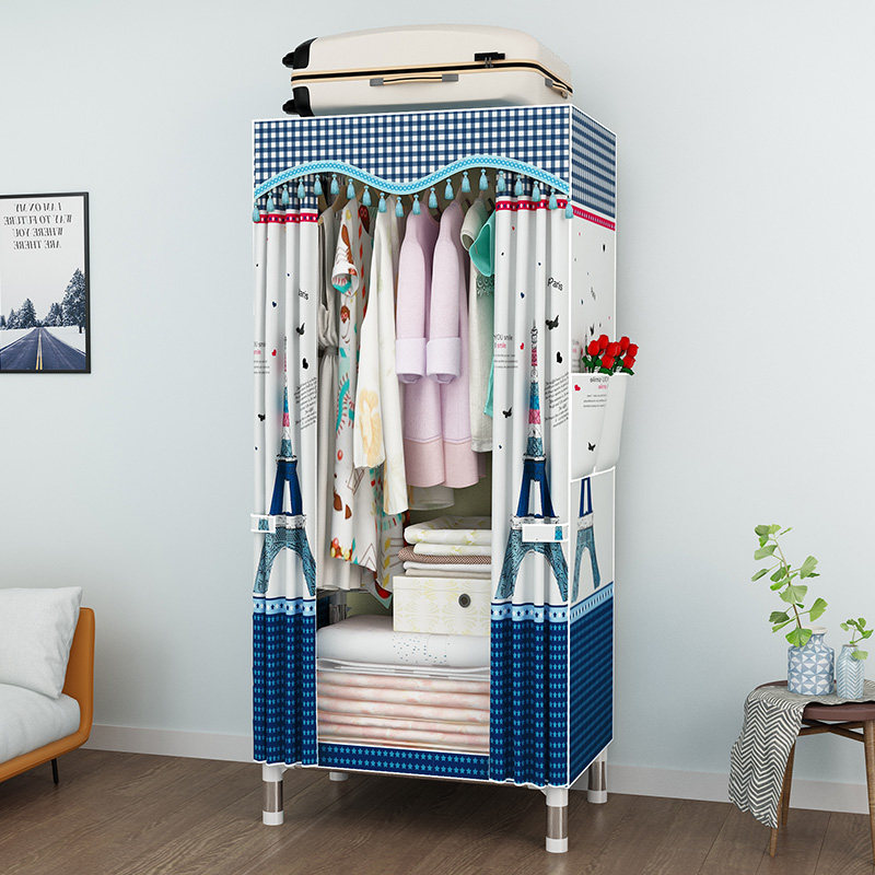 Wardrobe simple cloth wardrobe single student dormitory steel pipe thickened economical fabric small wardrobe 60cm long