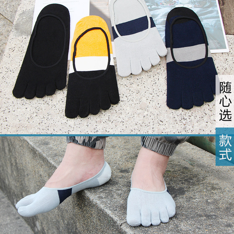 Five Fingers Invisible Socks Men's Pure Cotton Summer Thin Breathable Deodorant Socks Short Socks Toe Invisible Socks Shallow Mouth Full Cotton Toe Socks