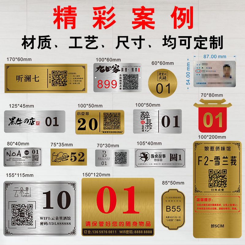 Customized metal copper table label stainless steel corrosion on the cuisine number of custom code 2D code tailored tablesRestaurant silk tablesRestaurant simulation tablesSign plate number