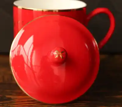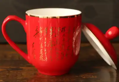 Chinese red porcelain cup lid Mao Zedong poetry blessing general water cup lid Large boss cup lid Bone porcelain cup