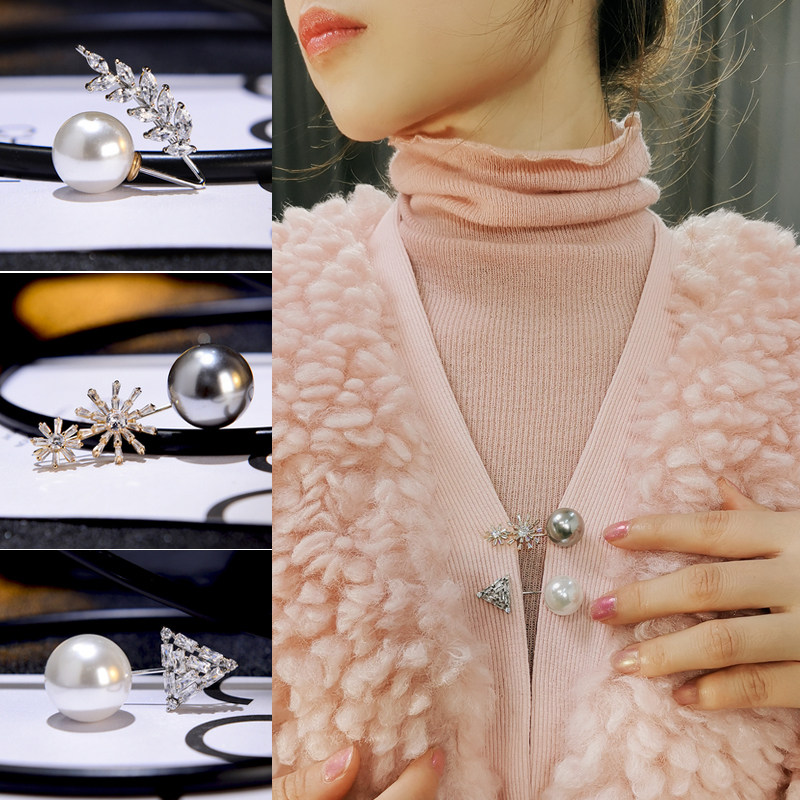 Pearl brooch Anti-glare net red pin decoration creative wild dark buckle needle cardigan fixed buckle collar needle buckle lapel