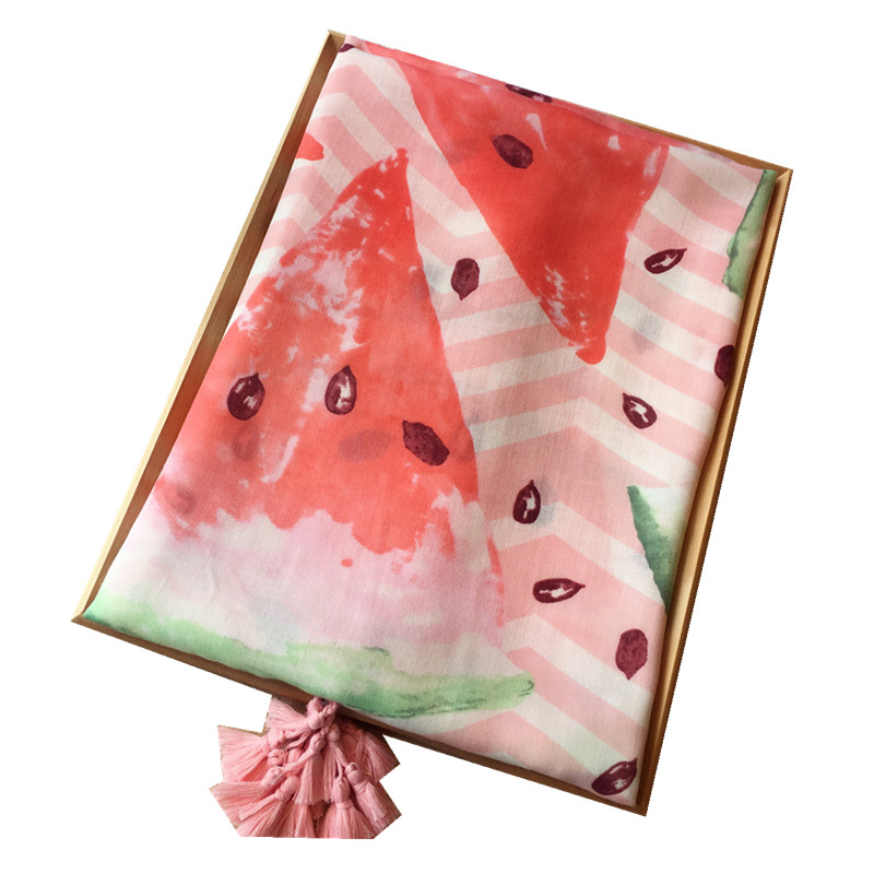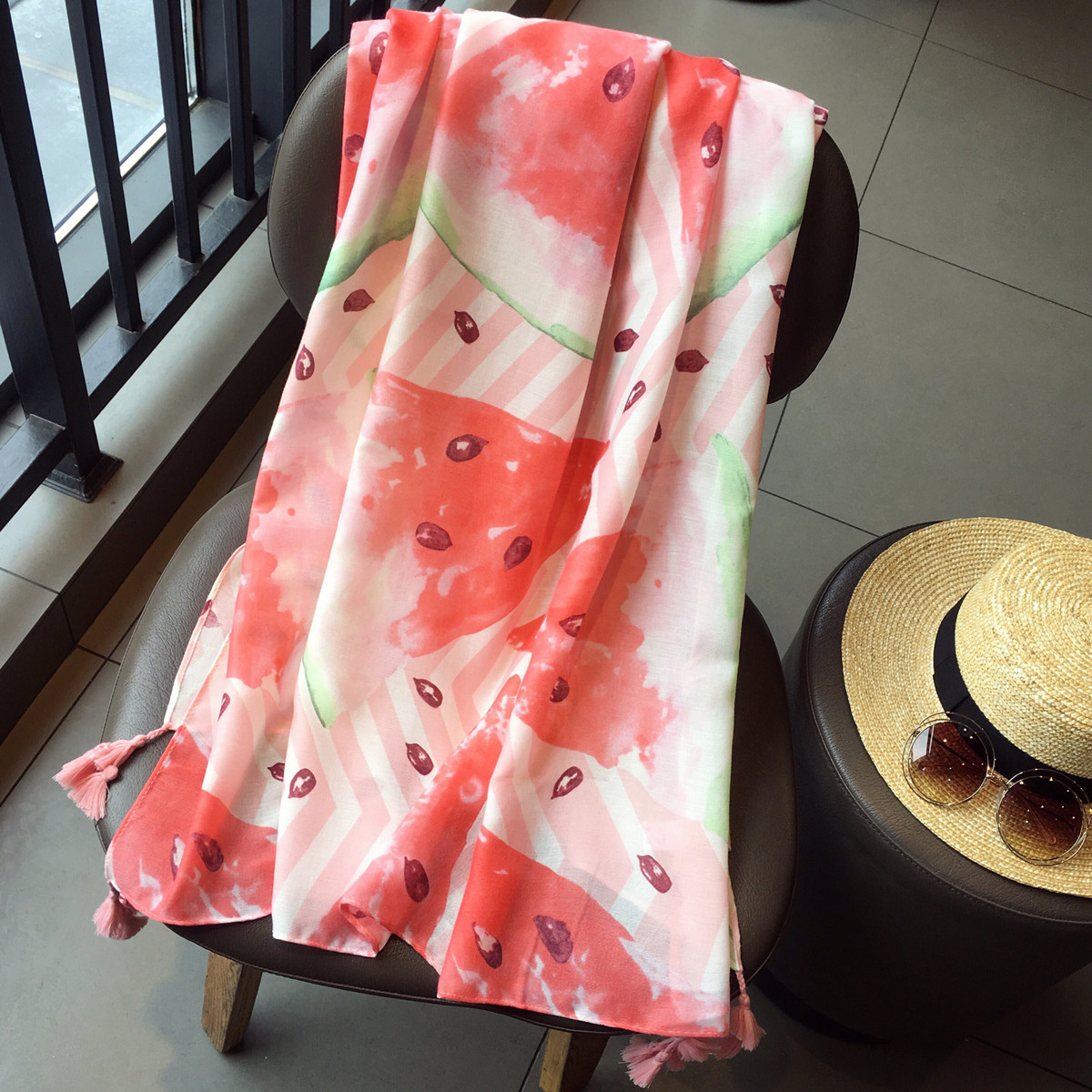 Sunscreen shawl women's summer new Korean version of refreshing pink watermelon travel scarf Beach towel dual-use cotton and hemp scarf