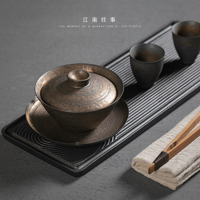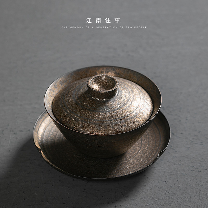 Jiangnan Ceramic Sancai Gai Bowl Large Number of Tea Tea Cup Gongfu Tea Tea Set Iron Glaze Anti-scalding Manual Large size Size Tea Bowl Single