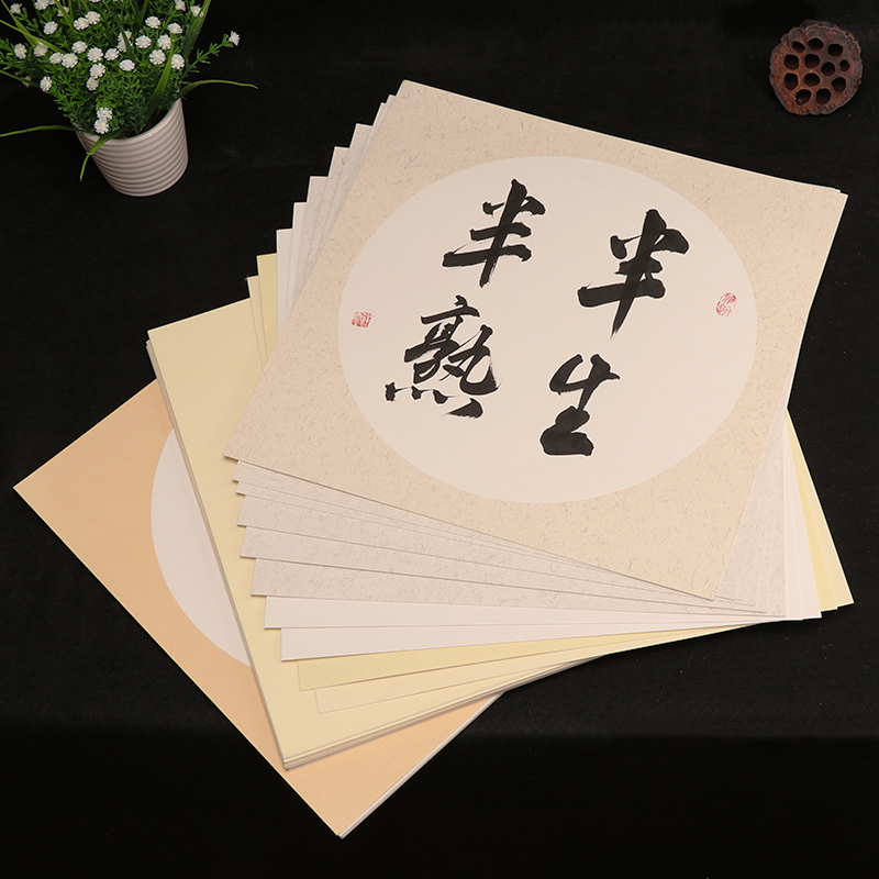 Mao Pen Word Blank Xuan Paper Lens Paper Jam Fan Surface Half Raw Semi-Cooked Rice Paper Work Stroke Small Block Block Calligraphy Special Work Paper