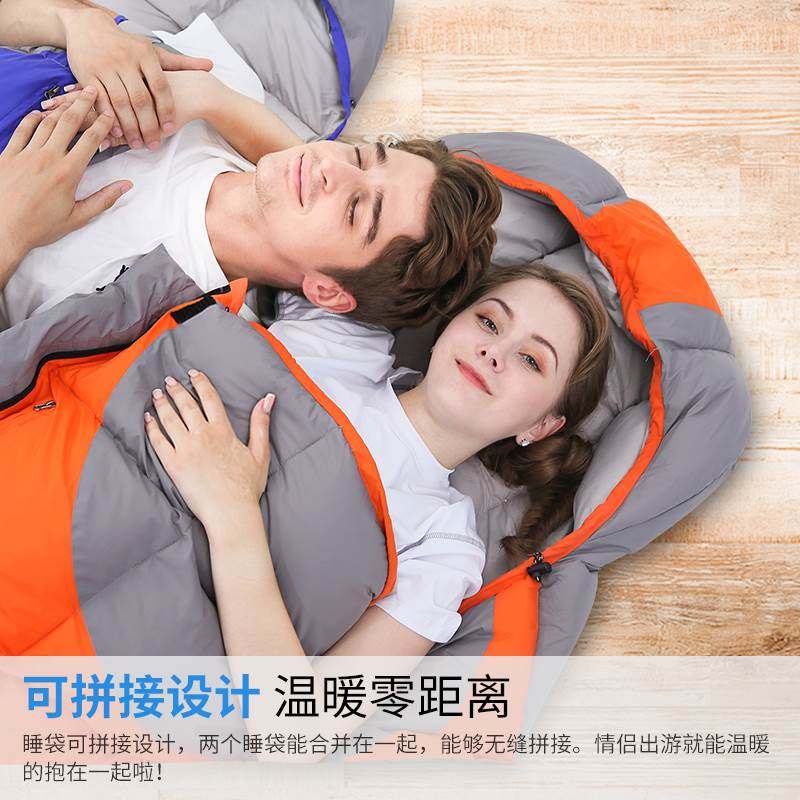 Down sleeping bag adult outdoor autumn and winter thick warm duck down indoor portable splicing double camping sleeping bag