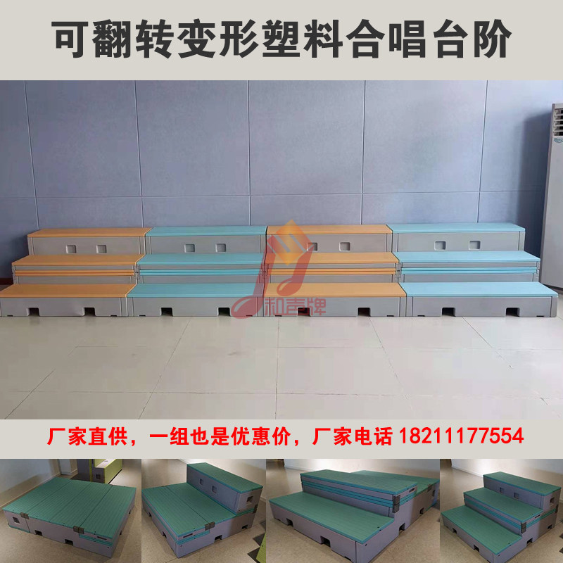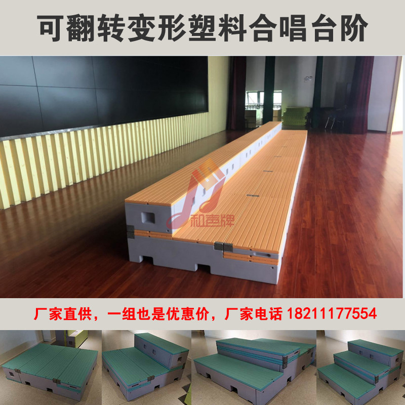 Campus PE plastic three-layer chorus stage two-in-one can be freely deformed music classroom solid wood steps