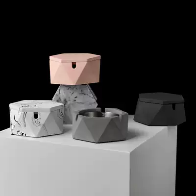 Little Western home Nordic wind ins cement ashtray household with lid triangle pattern ashtray fashion home decoration