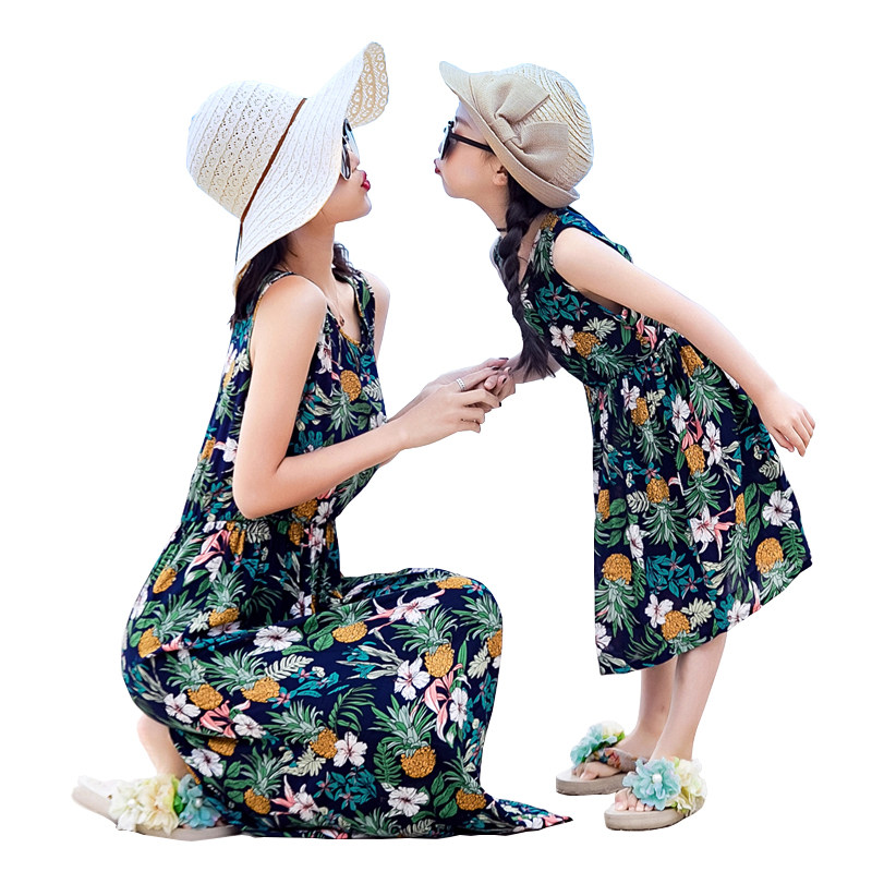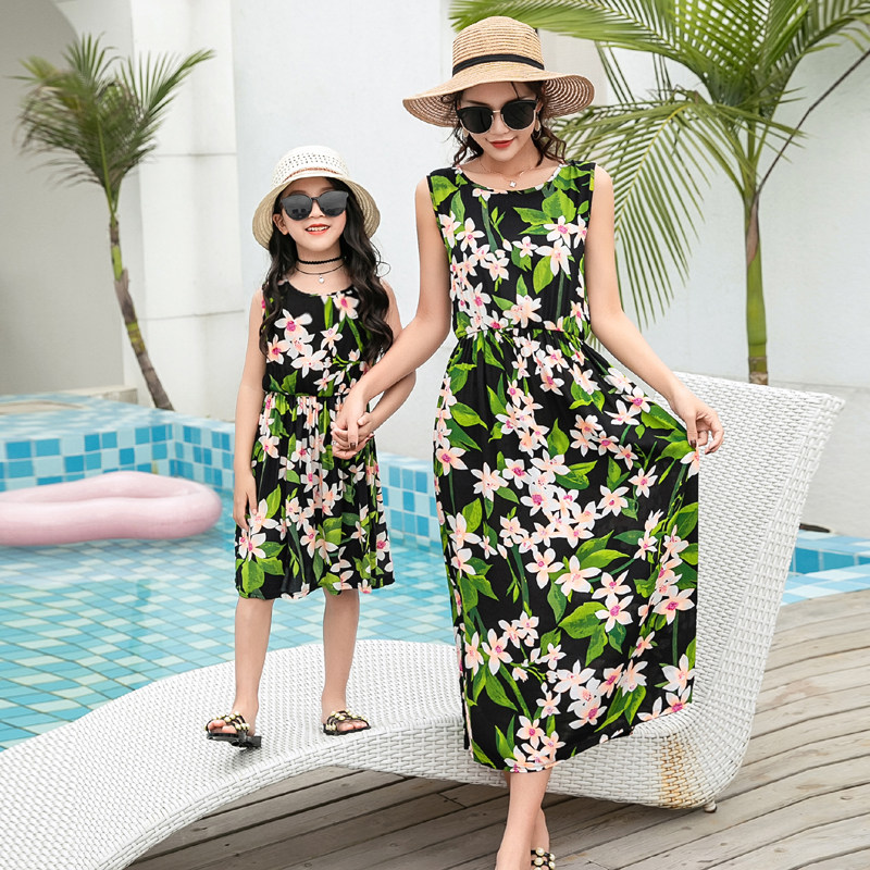 Summer parent-child dress children's cotton beach skirt in the big boy mother and daughter cotton silk gauze skirt in the long version of the girl's floral skirt