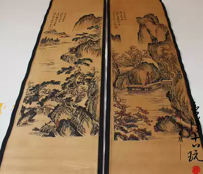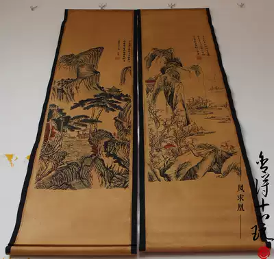 Antique old calligraphy and painting Chinese painting mural Tang Yin landscape painting four screens decorative painting living room hanging painting has been mounted