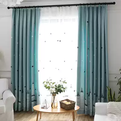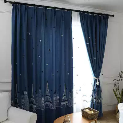 Blue castle children's room curtains Cotton linen material custom boy bedroom cartoon blackout curtains finished floor-to-ceiling windows