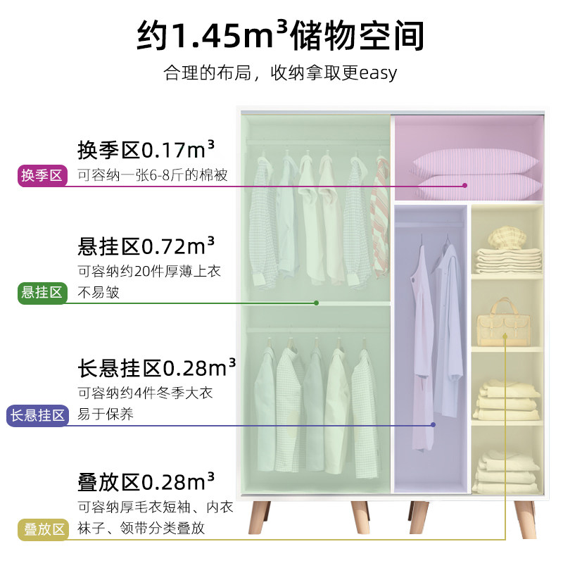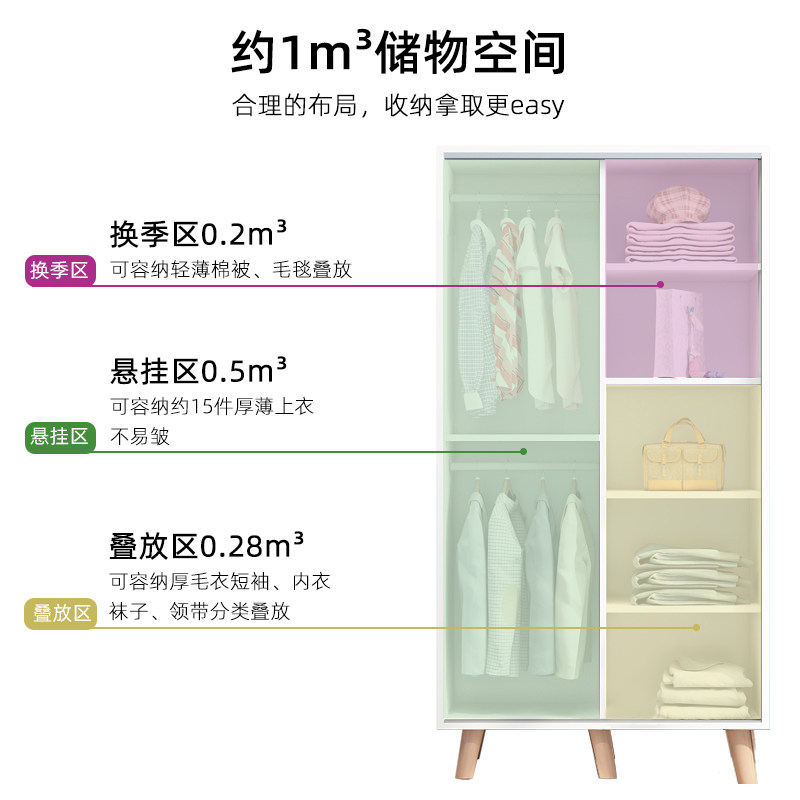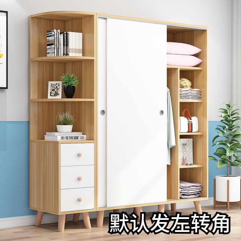 Wardrobe simple sliding door Solid wood simple modern bedroom assembly large capacity wardrobe Household economical 2 doors