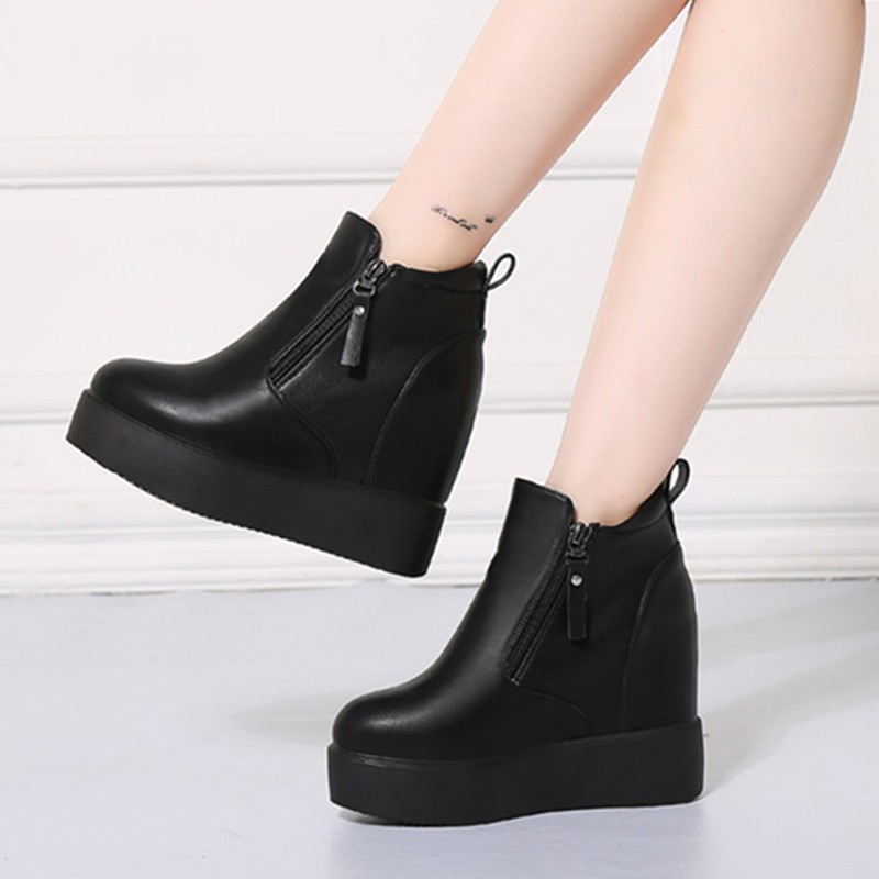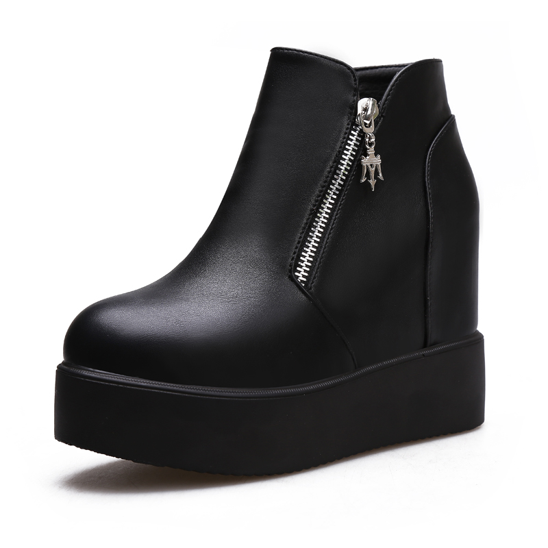 Caravan Wen 2020 Spring Autumn season Single shoe woman Short boot Inner heightening Rice Cake Thick Bottom Slopes Heel High Heel Flat-bottomed Size Leather Shoes