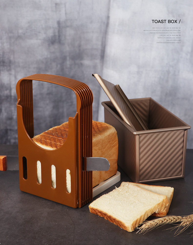 Gold corrugated toast mold cover + brown toast slicer + bread knife + oil brush + yeast