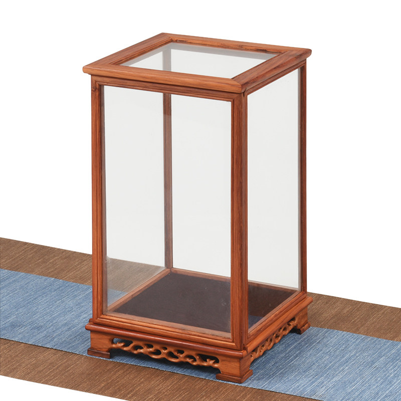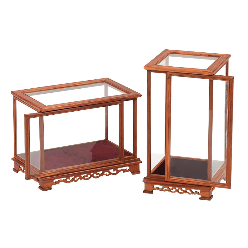 Flower pear wood moving door Buddha glass cover handicraft glass cover base Pcage display case dust cover Buddha niche customize-Taobao