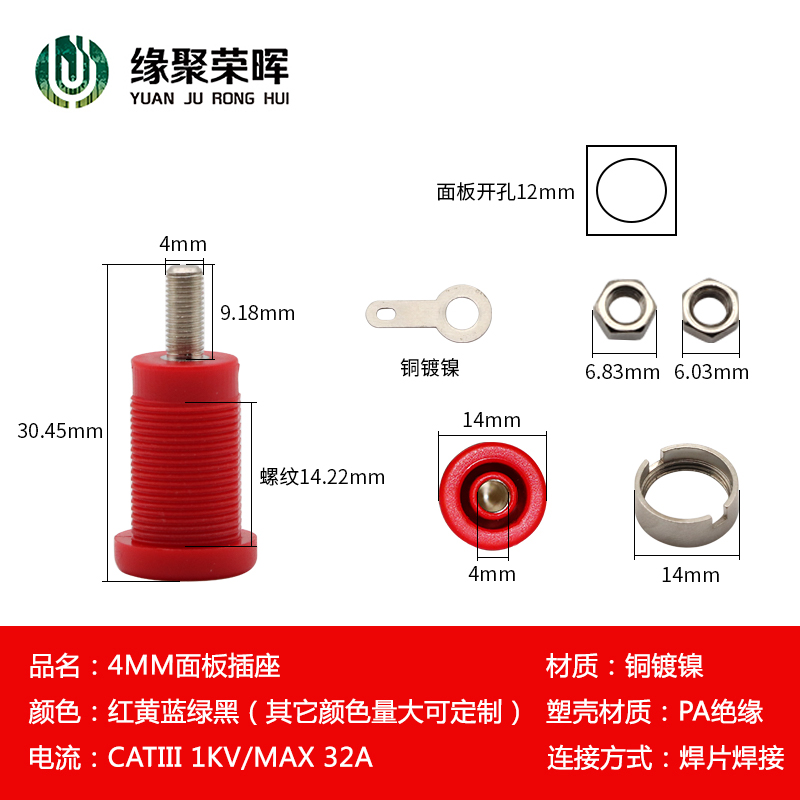Banana socket 4mm plug socket ø4 hole safe terminal block of pure copper opening panel socket plug column