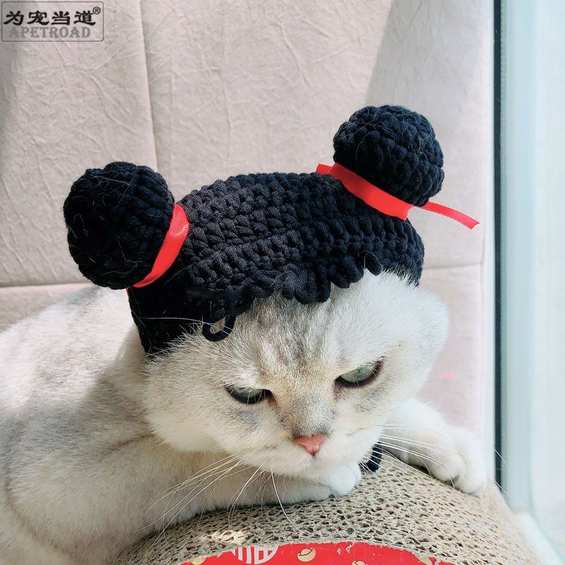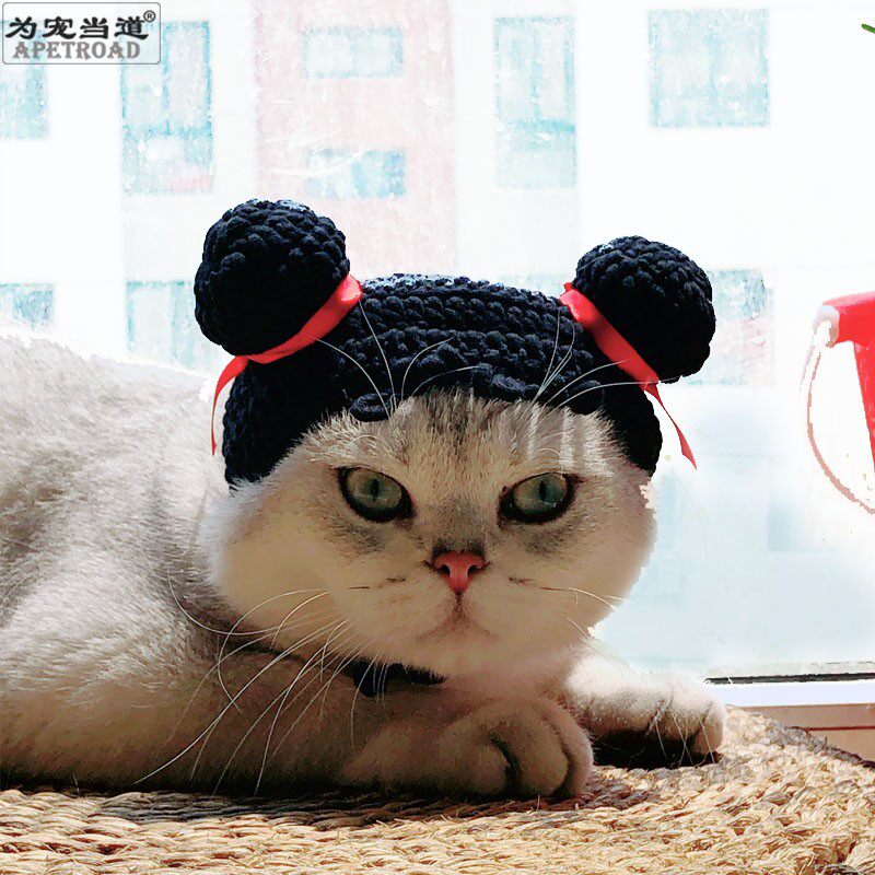 Which Nacha Changed Clothing Pet Hats Pet Ornaments Head Accessories Kung Fu Kitty hats Hand Woven Cat Hats
