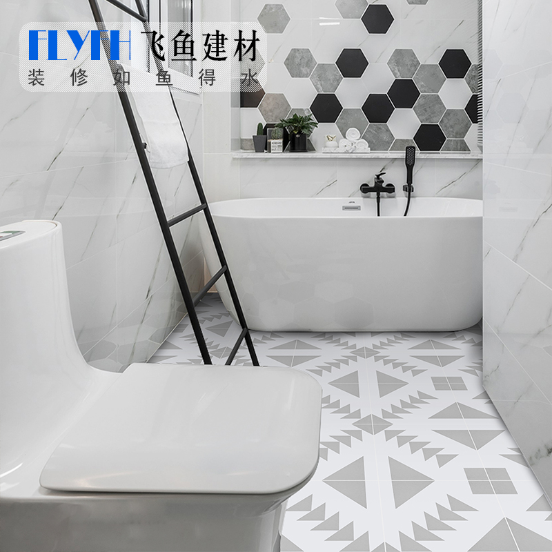 Nordic retro light gray fishbone geometric tiles 300x300 powder room bathroom kitchen anti-slip wall tiles