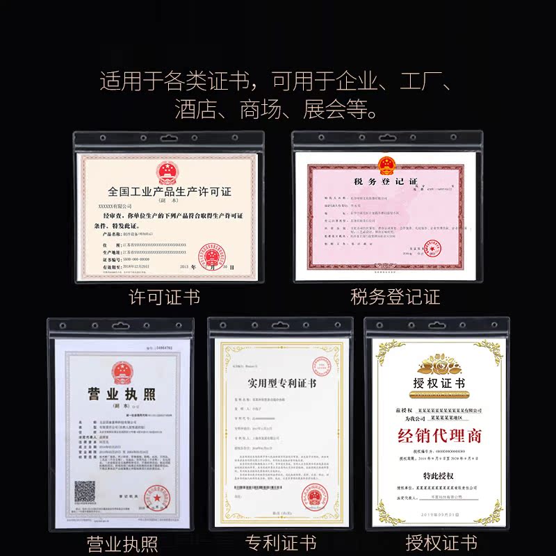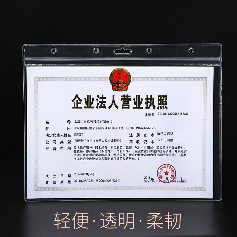 Industrial and commercial business license protective cover certificate copy protective cover A3 original copy of food hygiene permit plastic hanging wall