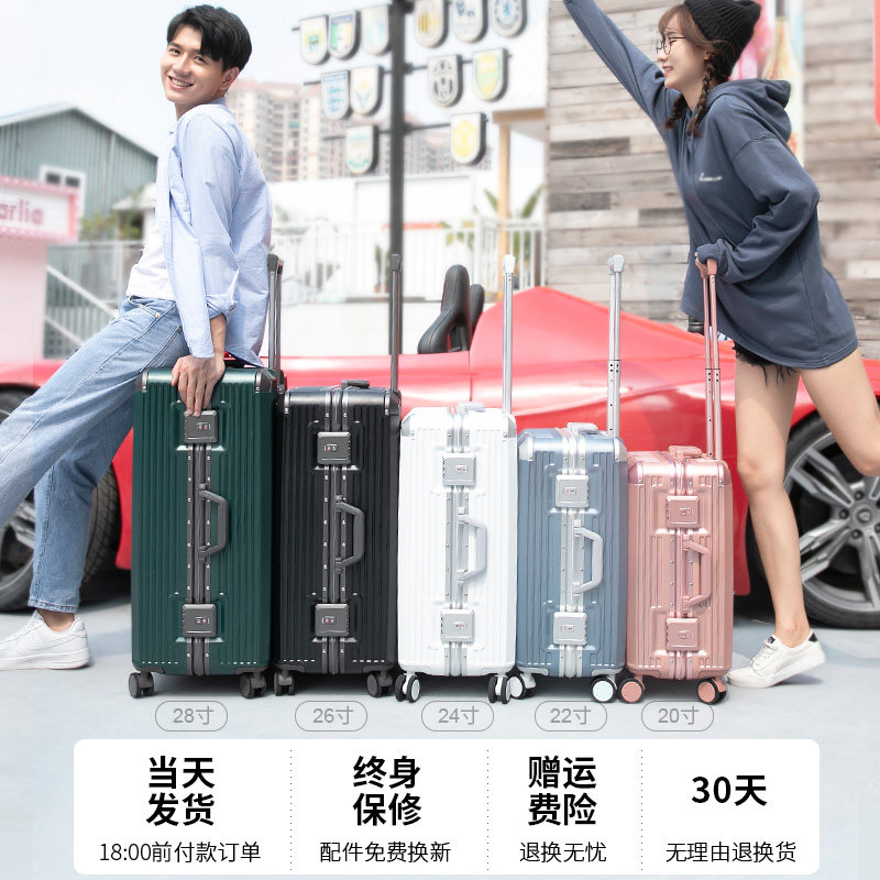 Suitcase Women Ins Nets Red New 20 Inch Boarding Aluminum Frame Pull-Lever Box Durable Large Capacity Travel Leather Case 24