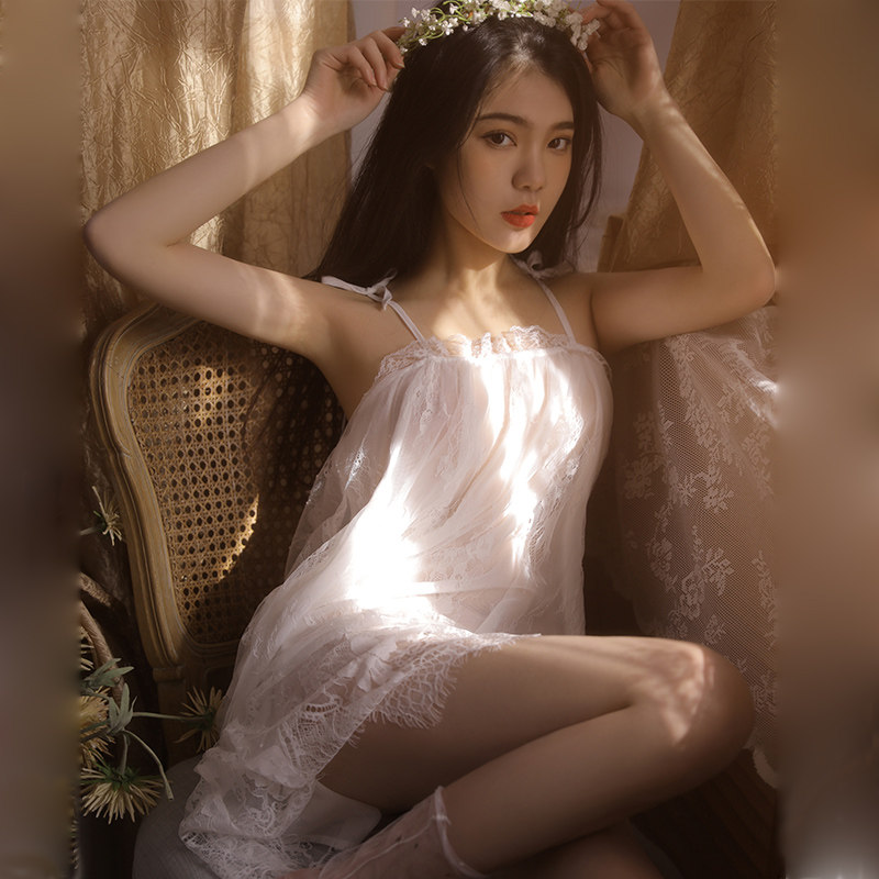 7836 White Beautiful Fairy (one-shoulder nightdress + T pants)