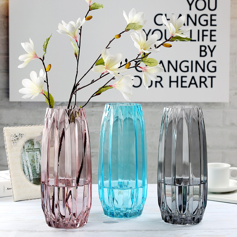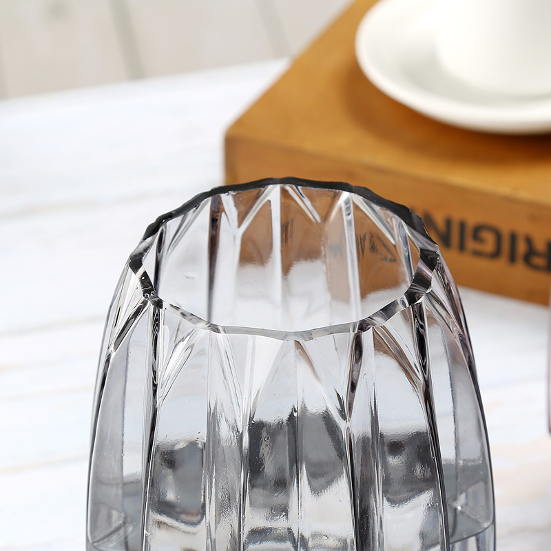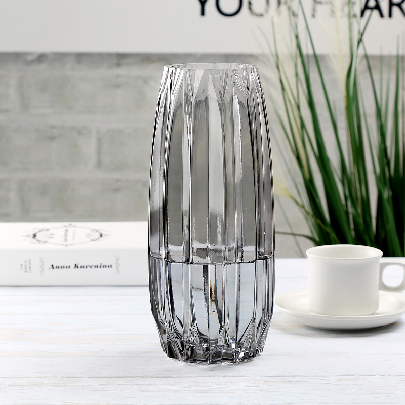 European-style minimalist smoke-gray glass vase vase ornaments vertical edge geometric stripes living room home decoration dry flower high