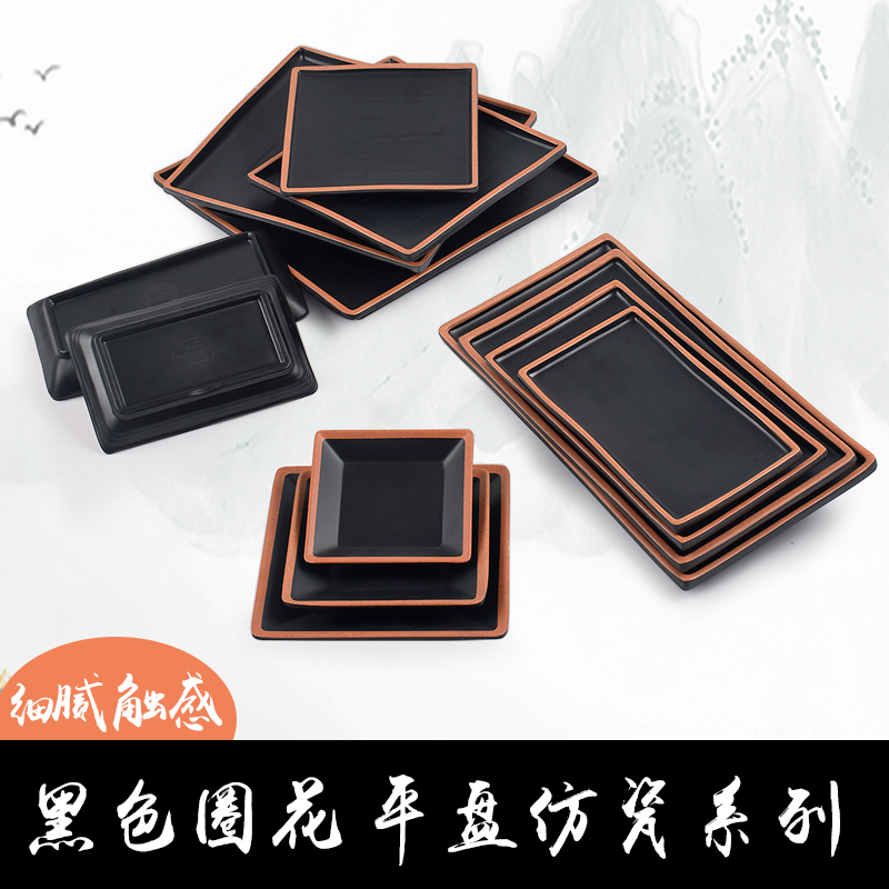 Hot Pot Beef Barbecue Plate Rectangular Flat Pan Roast Snack Pan Black Ring Flowers Sushi Pan Buffet Tray