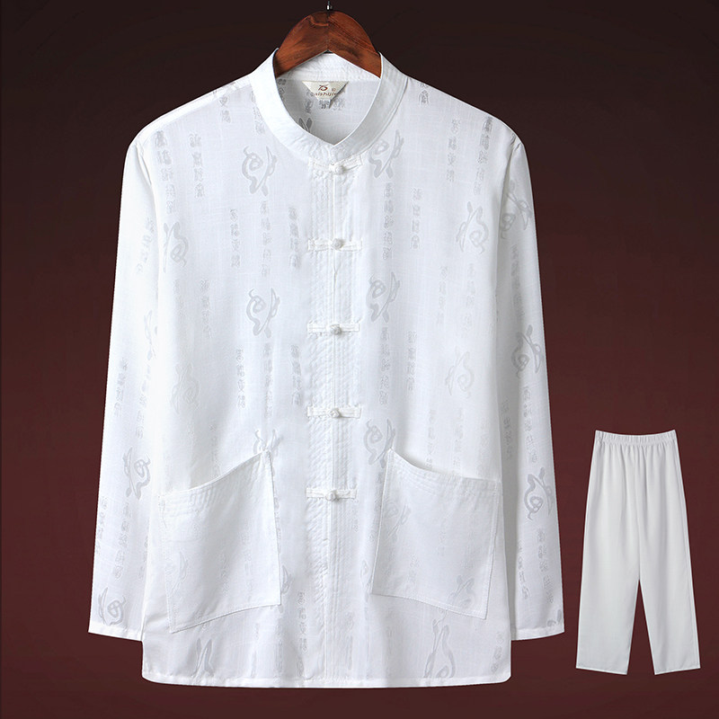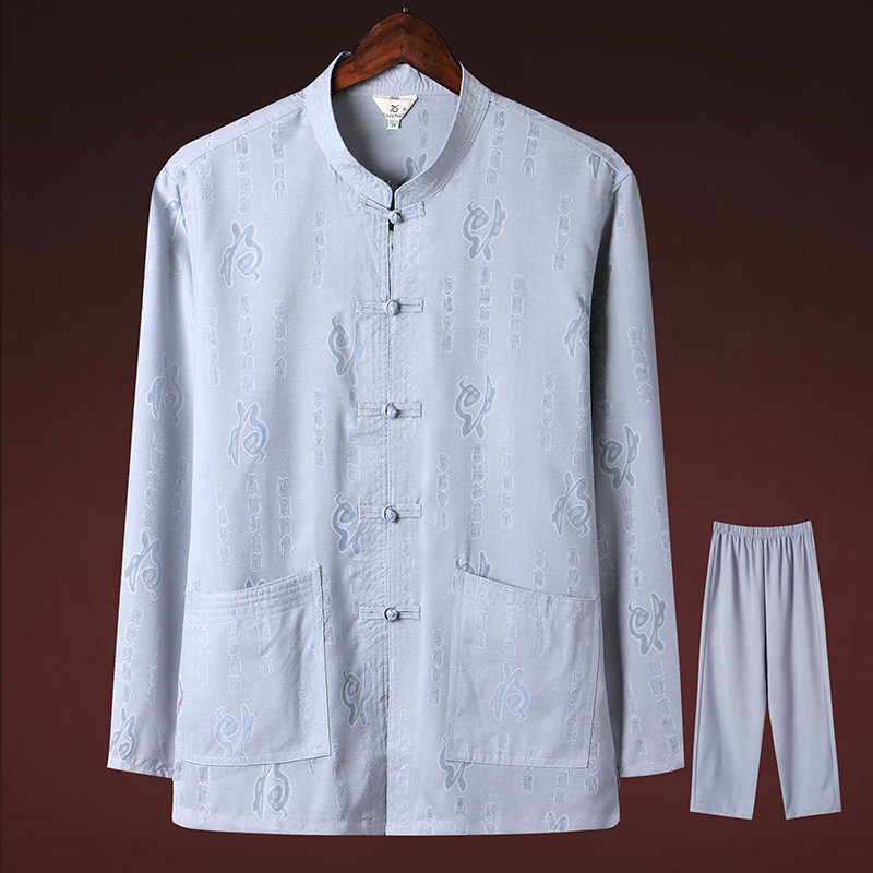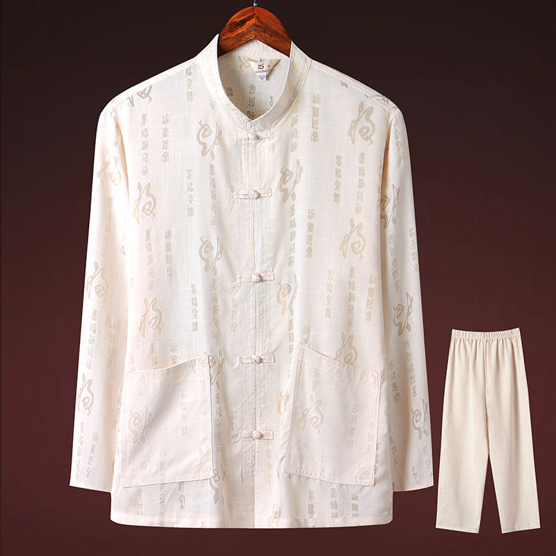 2022 Middle - aged Chinese style old cotton tatton daddy long sleeve suit Lilinen grandfather